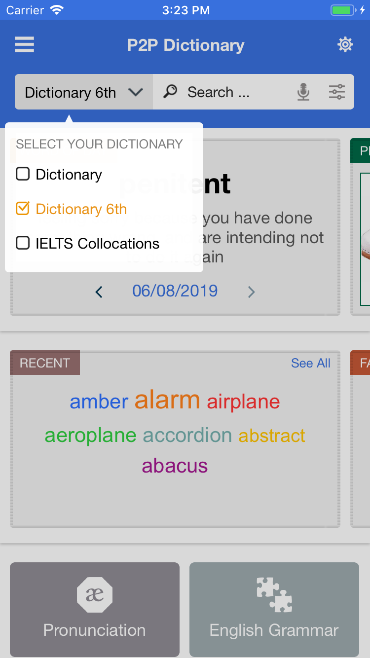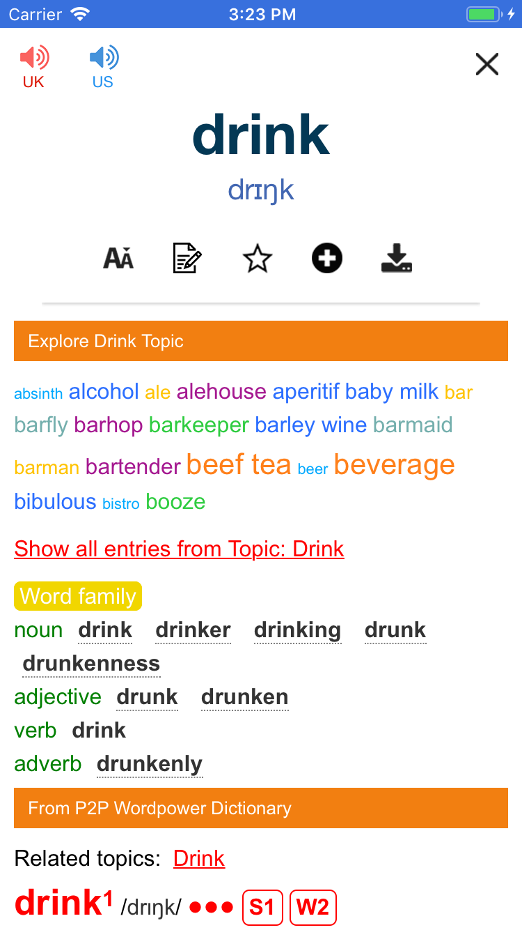 An integrated Collocations Dictionary with more than 65,000 collocations: learn word combinations to use the correct words together.